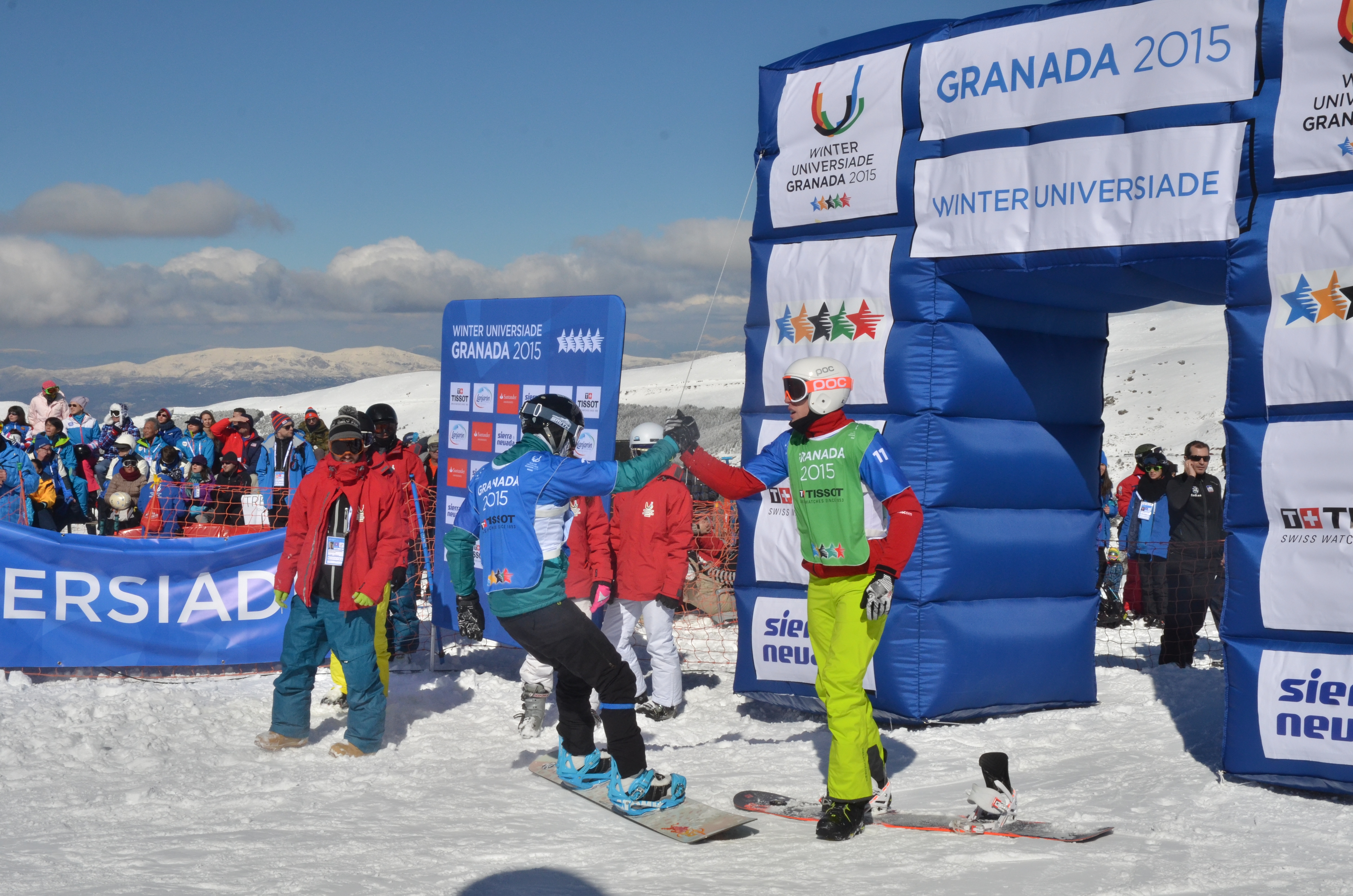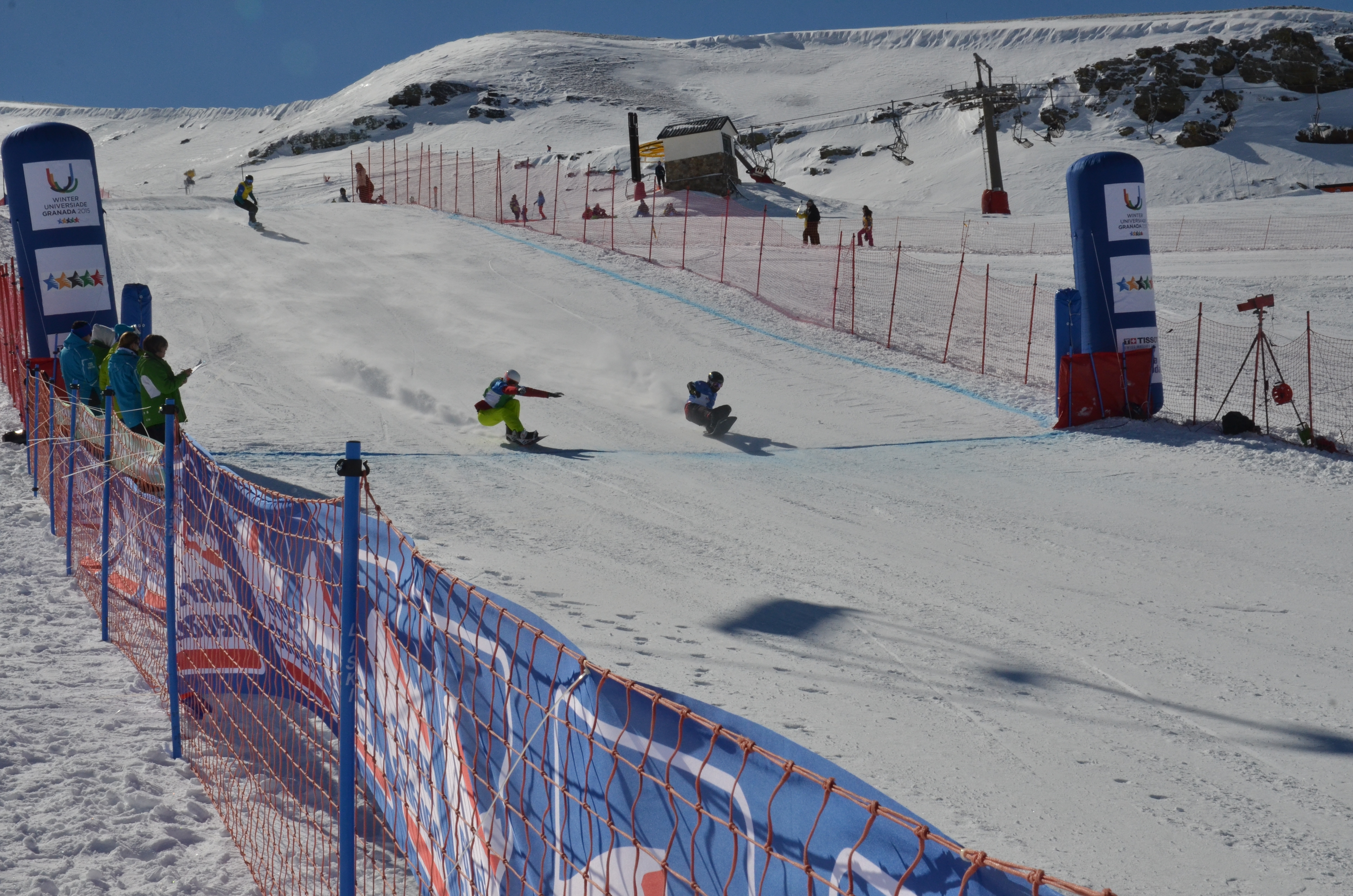 Am Montag den 02.02. kamen wir in Granada in Spanien an. Bereits am Dienstag konnten wir in den Kurs trainieren gehen. Der Kurs war nicht technisch, man musste einfach sein Snowboard flach legen können. Am Mittwoch war wieder ein Training angesagt, leider konnten wir aber wegen dem schlechten Wetter nicht auf den Schnee. Die Fahrt nach Sierra Nevada und wieder zurück wurde uns leider nicht erspart. Am Nachmittag sahen wir uns die Sehenswürdigkeiten der Stadt Granada an und machten später noch ein Konditionstraining. Am Abend war die Eröffnungsfeier, an welcher wir teilnehmen durften. Der Donnerstag war der Tag der Qualifikation. Wir gingen also wieder auf den Bus nach Sierra Nevada und nach etwa einer halben Stunde in einem Bistro war klar, dass wegen dem starken Wind kein Boardercross stattfinden konnte. Mein Team ging noch eine Stunde Snowboarden, ich entschied mich zurück ins Hotel zu fahren um mich dort auf meine Uniprüfung vorzubereiten. Endlich war Freitag und das Wetter spielte sogar mit, so dass wir endlich unser Rennen fahren konnten. Bei minus 25 Grad starteten wir mit der Qualifikation, welche ich auf Platz 11 beendete. Direkt nach der Qualifikation starteten die Heats. Ich hatte die zweite Startplatzwahl und gewann mit grossem Vorsprung den ersten Heat. Im Viertelfinale hatte ich wieder zweite Wahl, ich rutschte jedoch am Start von den Handles ab und war direkt letzter. Mit zwei souveränen Überholmanövern kam ich auf den zweiten Platz und erreichte den Halbfinal. Im Halbfinale hatte ich vierte Wahl und somit den schlechtesten Startplatz. Nach dem Start war ich an dritter Stelle, ich konnte jedoch wieder zwei Gegner überholen und ich gewann meinen Halbfinal. Das Finale an der Universiade beendete ich nach hartem Kampf und vielen Positionswechseln auf dem undankbaren 4. Platz. Aufgrund des starken Starterfeldes bin ich mit diesem Resultat zufrieden, dennoch ist es schade, dass es so knapp nicht für eine Medaille gereicht hat. Die Universiade war ein super Event! Ich traff viele nette Leute und erhielt so einen Einblick in andere Sportarten.